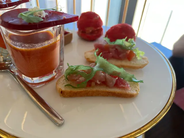 (Tuna, tomato and Ao Tosaka bruschetta)