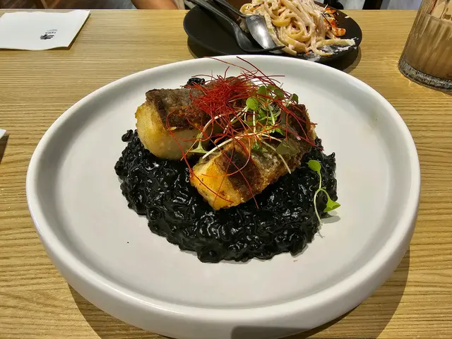 比目魚墨魚汁意大利飯,比目魚皮煎得好香脆,魚都有鮮味,意大利飯個汁非常入味,唔錯。