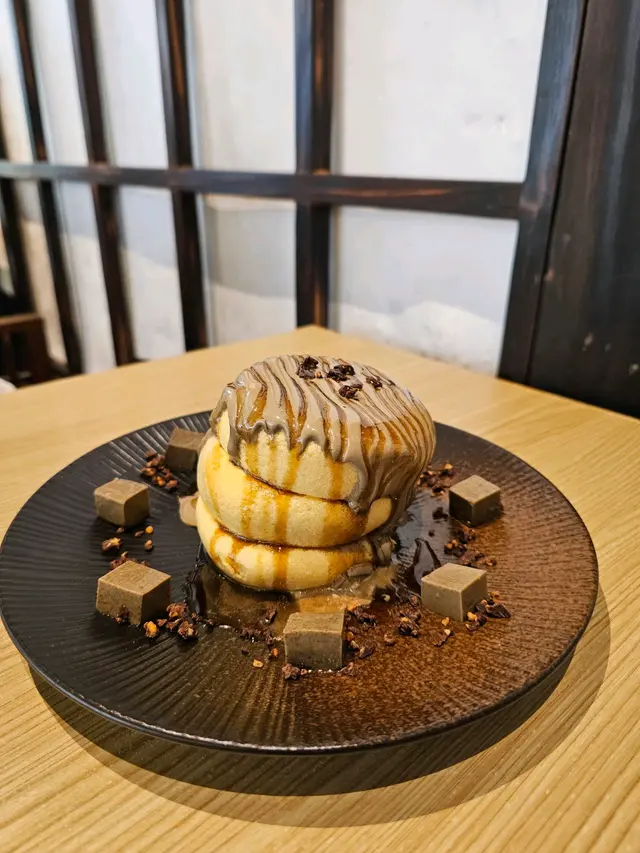 成餐最好食既係榛子焙茶梳乎厘pancake, 空氣感同口感balance得非常好,蛋味濃,上面淋左焙茶醬同榛子醬;一上枱就聞到好香榛子味,但食落第一啖係濃濃既茶味,榛子同焙茶醬配合得好好,唔會只有好濃既茶苦味,又有榛子香甜,好好既配搭。呢間餐廳既pancake暫時係我心目中第一位