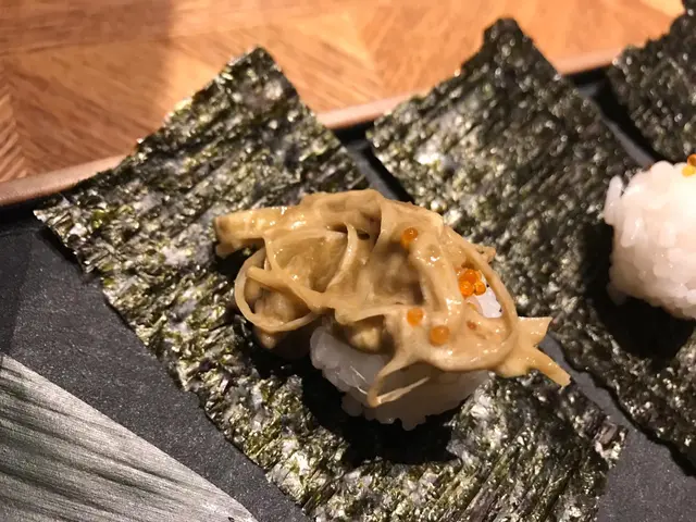 這個味道比較鹹,中間的三文魚是熟透了的,炸得香口,上面的蘿蔔絲和洋蔥絲切得很細緻。
