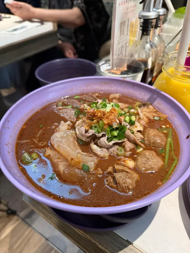 泰式牛肉船麵朋友大讚,個牛骨湯底濃郁,而金邊粉吸哂啲湯汁,入面有牛筋、牛丸、牛柏葉覺材料,相當豐富