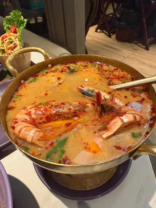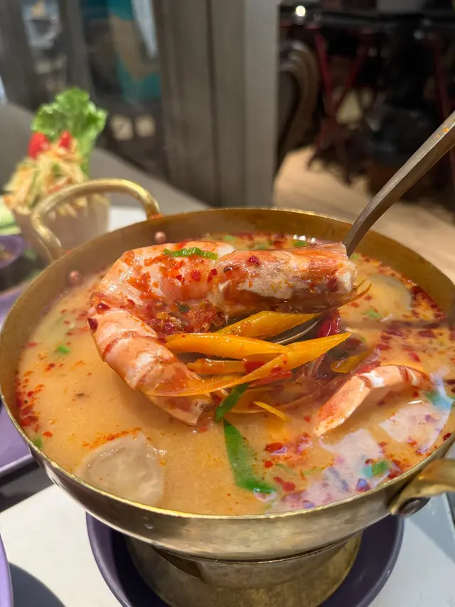 海鮮冬蔭功湯,個湯底都幾酸濃郁,帶有少少泰國多款香料味道,仲有多款海鮮,大大隻虎蝦,仲有青口魷魚,好好飲
