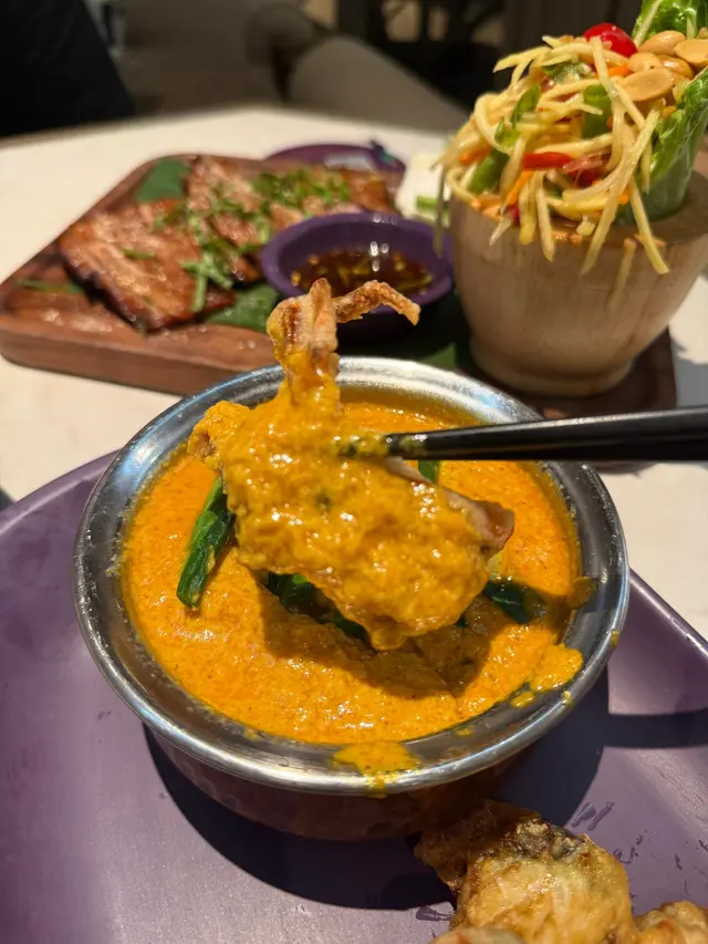 黃咖喱軟殼蟹真係必點推介,軟殼蟹炸到金黃酥脆,而黃咖喱汁椰香微甜帶蟹膏鮮味,呢個一定要點嚟食