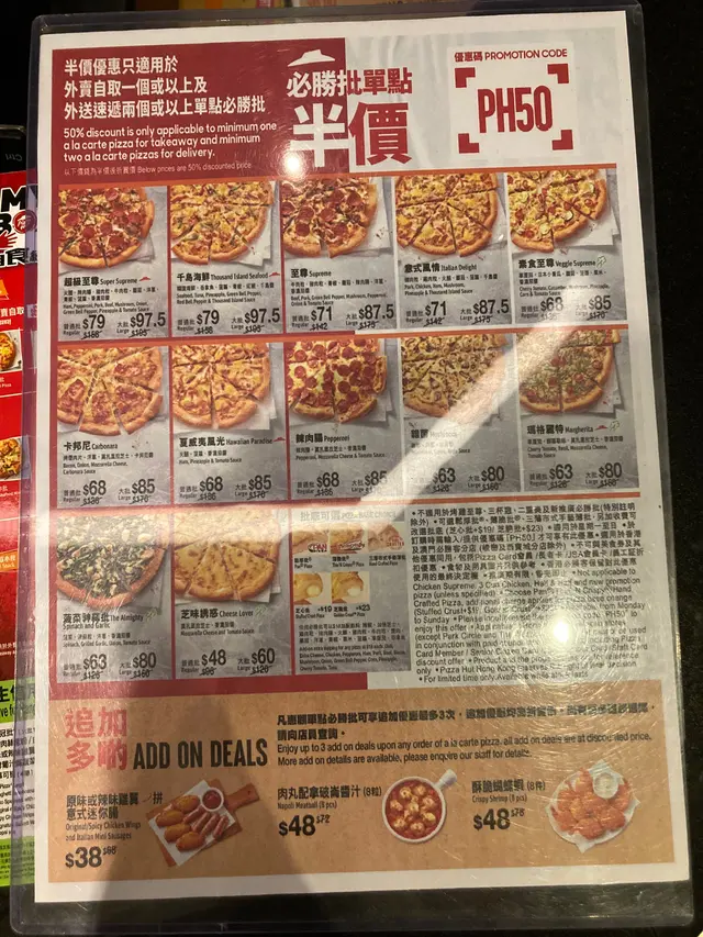 所以今日放工之後,梗係忍唔住收工後打定電話去點個外賣自取,點知打極佢個分店同埋總店外賣熱線,甚至送外賣既熱線都打過,都係打唔通......搞到我以為PIZZA HUT已經執左,線路可能極度繁忙,建議提早起馬半個鐘打去,但都應該打唔通,我打左20幾次都係冇人聽,電話熱線已經廢左;穩陣起見既話,建議大家可以係佢官網度落訂,可以選擇到付現金,唔洗用信用卡都得!