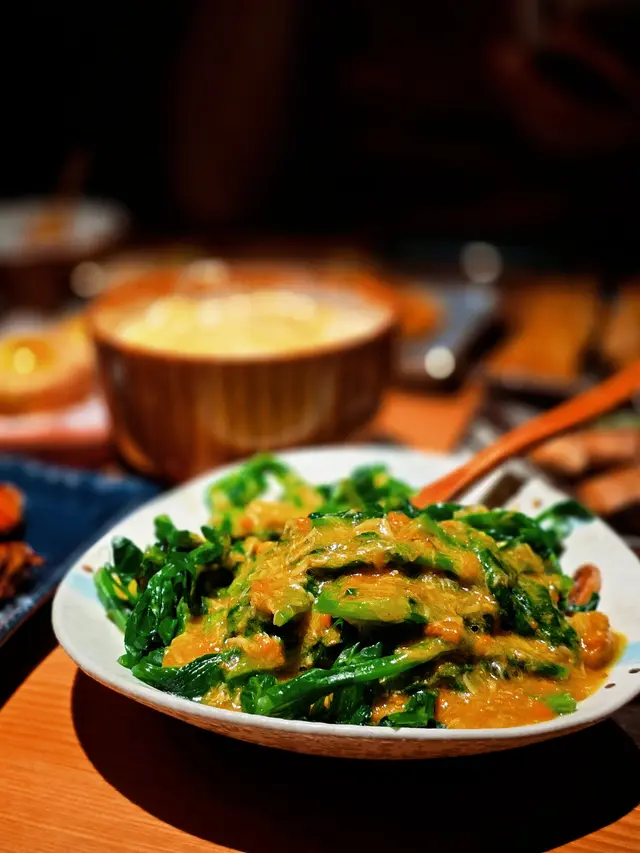 蟹粉豆苗清新爽口,加入大量蟹粉更顯奢華;