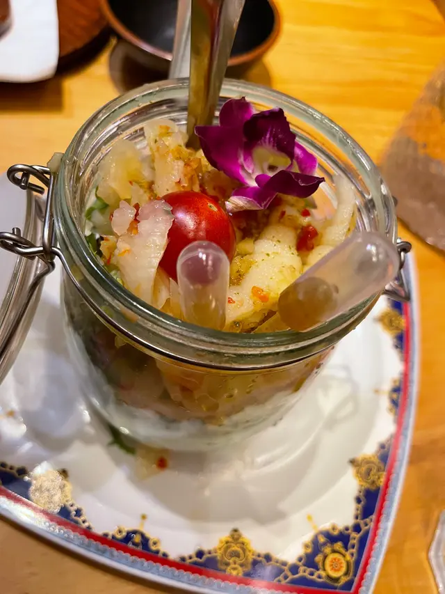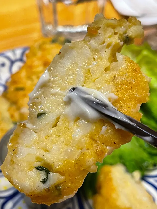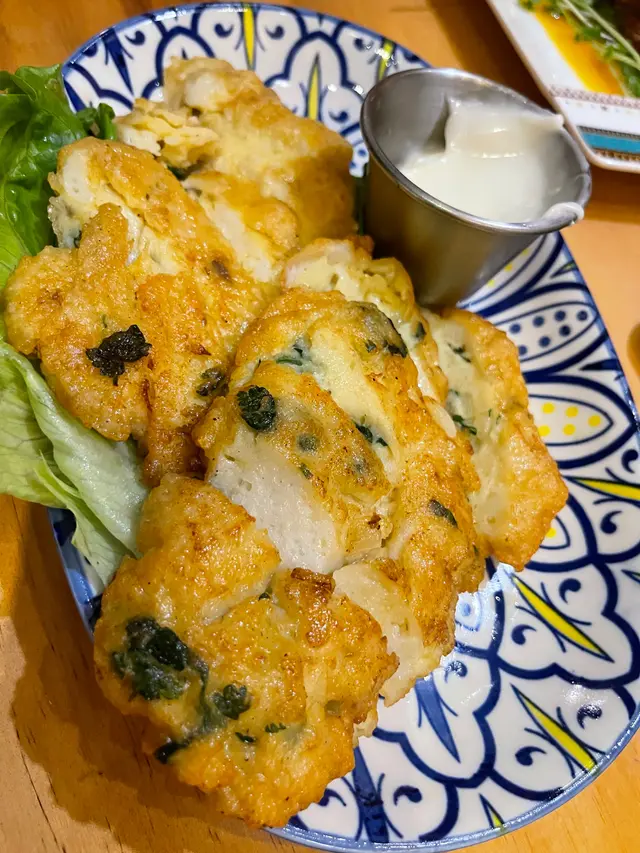 泰式酥炸墨魚餅,上枱時熱辣辣,入口啖啖肉之餘,外皮炸得鬆脆可口。內裏的墨魚餅非常軟滑,咬落爽口彈牙。內裏還有墨魚粒,肉質還十分彈牙爽口,配沙律醬入口味道更一流
