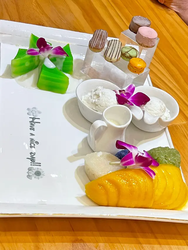 最後就是人氣必選+A.S.T 甜品拼盤,一次過可以品嚐到芒果糯米飯、招牌耶汁千層糕、西式甜點,芒果糯米飯十分軟糯,三款口味,再搭配新鮮香甜芒果令口感清新,甜而不膩。而招牌耶汁千層方面層次分明,入口柔韌香軟十分有口感,當中耶汁既香味都十分濃郁十分配合。其他甜點如馬卡龍口感都鬆軟,雪糕香滑,整體十分配合,分量十足!