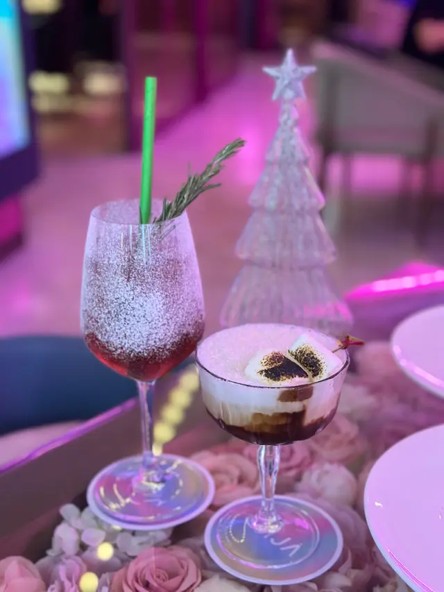 -聖誕限定冬日特飲🍹酒心朱古力雞尾酒($98)及混合蘋果汁、黑莓、桑莓等的無酒精特飲粉紅佳人($88),兩款打卡度滿分💯可以以優惠價$48 升級!