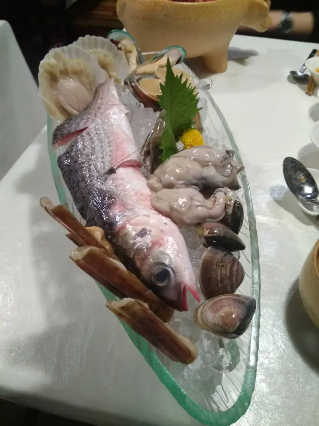 海鮮拼盤裡面有蠔,有鮑魚,有蟶子仲有半條烏頭,真係超級豐富架!