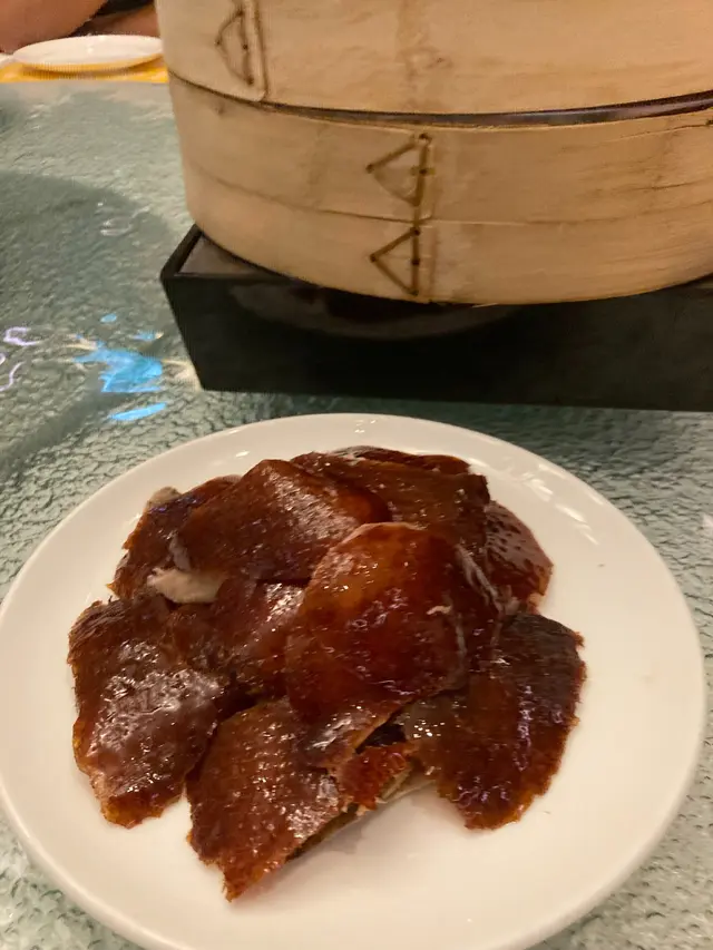 北京片皮鴨 $888:8.5分,國金軒的重頭戲還是片皮鴨。這時也開了支紅酒,是差不多這餐飯的一半價錢,愛酒的,當然高興。說回片皮鴨,上檯時,還是連皮帶肉的去片,是正宗的做法。鴨皮是香脆的,鴨肉質感亦嫩滑。一食配上餅皮,加上鴨醬及青瓜,還是令人一件接一件的吃。