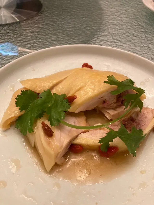 女兒紅花雕杞子醉雞 $168:8.5分,天氣熱,開了支香檳,配上的是女兒紅花雕杞子醉雞。女兒紅加上花雕,酒味挺突出,雞肉亦很嫩滑,有水準。