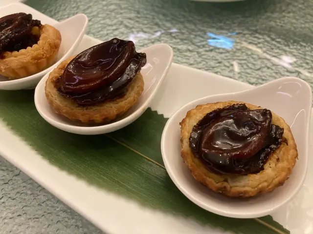 玫瑰金腿鮑魚酥 $380:8.5分,上菜有點混亂,這時才送上玫瑰金腿鮑魚酥。鮑魚夠腍身,金腿帶點鹹香,酥皮挺酥脆。$380是轉做五粒的份量,正常就是$228一客三粒的。
