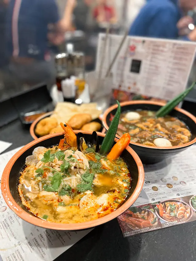 冬陰功配有蝦 青口 蟹柳 秋葵 尚算豐富 湯底酸度適中 辣度屬於小辣 同金邊粉幾夾 好惹味無過鹹~ 雞肉唔會好鞋而且都有好幾件 成個配搭都唔錯👅