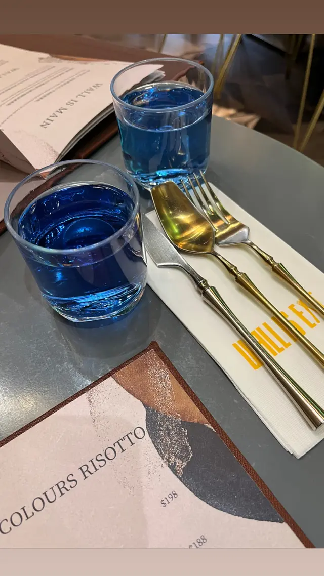 食物名稱有創意,有得食,又有得玩😛一坐低先黎杯藍色既水,係好岩打卡的餐廳!