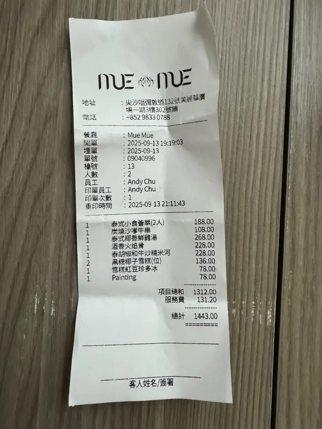 有格調又好食 sp1cy__f_cLevel 42025-09-17277 views Follow 同朋友嚟食Mue Mue嘅體驗非常不錯,餐廳環境有格調氣氛好好,有幾個菜式特別驚喜。泰式小食份量剛好,豬頸肉微辣惹味,豆腐,蝦多士同雞翼都炸得好脆口。炭燒沙嗲牛串烤得嫩滑。泰式椰香鮮雞湯湯底鮮甜又足料。酒香火焰骨充滿香料味,慢燉至軟嫩,味道層次分明。泰胡椒和牛炒糯米河煙韌口感好特別,第一次食到呢個口感好鍾意!!!飲品叫咗兩杯都唔錯,幾清新,重點符合香港人要求唔太甜:)整體餐點融合了泰國經典與創新料理元素,值得再訪!The above review is the personal opinion of a user which does not represent OpenRice's point of view.LikeShare有格調又好食 Mue Mue https://s.openrice.com/QrKT0h6vU00Report Post Ratings5Taste5Decor4Service5Hygiene4ValueDining MethodDine In