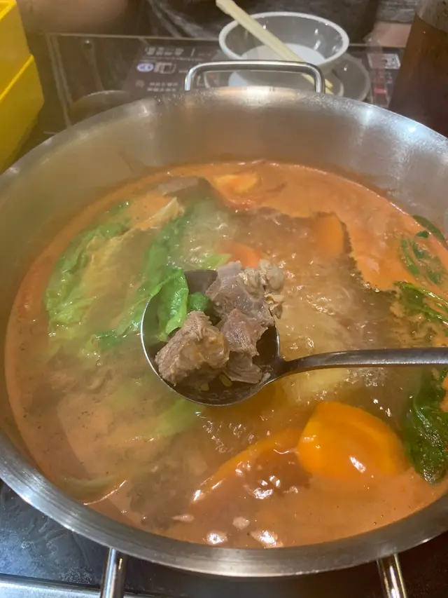 湯底到了,豐富而濃郁嘅蕃茄湯底,搭配牛尾極重嘅牛肉粒,味道酸酸甜甜易入口之餘又帶點肉香,配合肉食特別適合