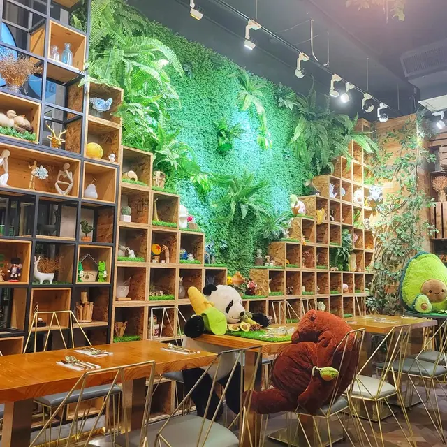 一到餐廳門口就見到以森林為主題嘅佈置,木餐桌、木櫃、不同種類嘅動物擺設 (熊貓,長頸鹿,斑馬,熊仔)等等,令人好放鬆去享受美食