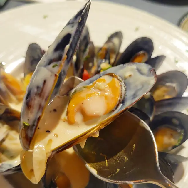 🦪白酒忌廉煮藍青口 $108