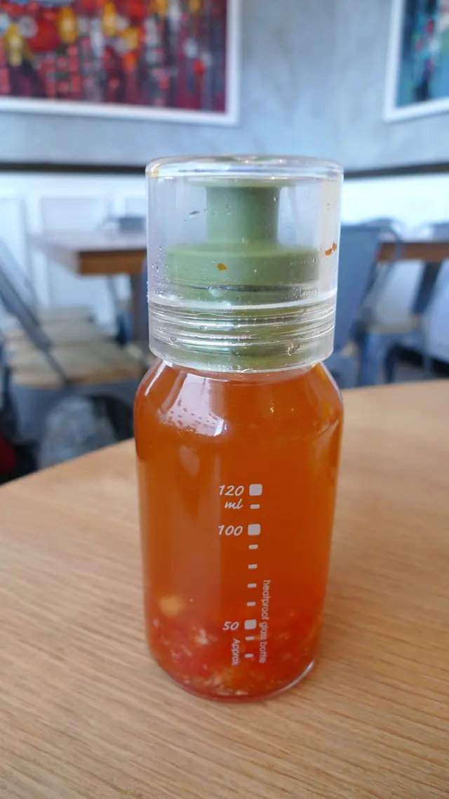 每個桌上沒有冗雜的調料瓶,只有一小瓶獨家秘制的越式酸甜醬,和泰式甜辣醬相比,前者口感更加清淡,卻又不失開胃的功效,很棒~