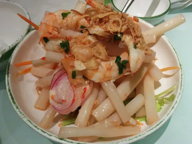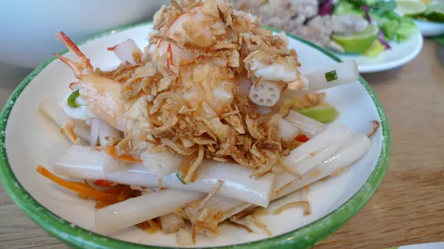 吃主食的同時,可以考慮佐以適當的小菜。網上呼聲比較高的就是這道安南藕苗大蝦沙律,蝦仁個大飽滿,肉質緊實,不過分量略少。藕苗就是家鄉常吃的藕心菜,醃制的極其入味,酸甜爽脆,怕酸的朋友慎點。