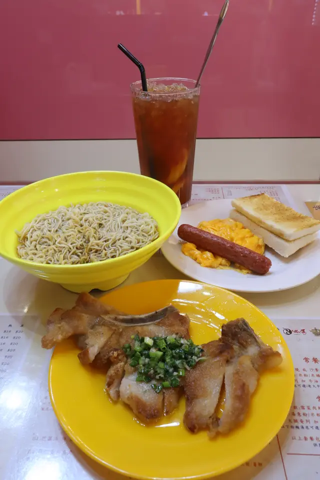 有趣的名字、可愛的康樂棋壁畫、還不錯的港式早餐 Lawrence LauLevel 42022-11-1759 views Follow 這間冰室首先吸引我的是它那特別的名字,入座之後,最吸引我的則是牆上的一幅長長的貓貓狗狗玩康樂棋的巨型壁畫。至於這天我在這冰室吃的早餐,價錢無疑是有點貴($46),但這「香蔥豬扒腸仔炒蛋 + 牛油多士 + 走甜凍檸茶」早餐的確是不錯的,豬扒肉質過得去,大量的蔥油是美味和加分的所在,配以炒得都算嫩滑的炒蛋、正常發揮的香腸與堪稱為童年恩物的出前一丁,正好成為一餐豐富飽肚的早餐。「尚君如夢」,究竟是誰為這冰室改了一個那麼文青的名字?舊歡如夢,我當然知道,但,「尚君如夢」呢?The above review is the personal opinion of a user which does not represent OpenRice's point of view.1Share有趣的名字、可愛的康樂棋壁畫、還不錯的港式早餐 尚君如夢 https://s.openrice.com/QrKT0edT600Report Post Ratings3Taste3Decor3Service4Hygiene4ValueDining MethodDine InType of MealBreakfast