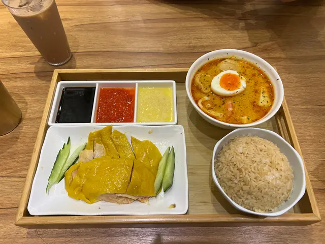 我同朋友叫咗一個海南雞飯,配喇沙米線,