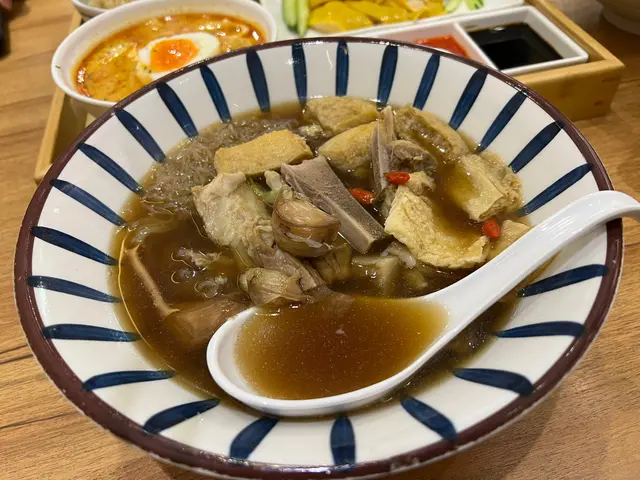 肉骨用作熬湯,有肉味,肉質頗為腍身。肉骨茶湯入口較淡,藥材味不算重,配埋米粉啱啱好。