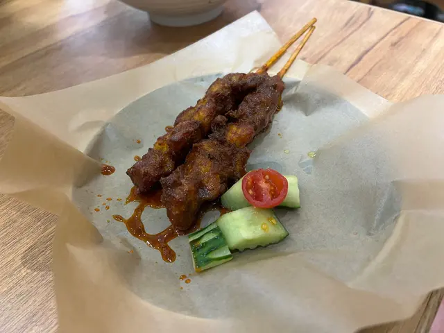 小食都不失色,吃東南亞菜式不可缺少既串燒:先把雞肉燒香,再淋上沙嗲醬。