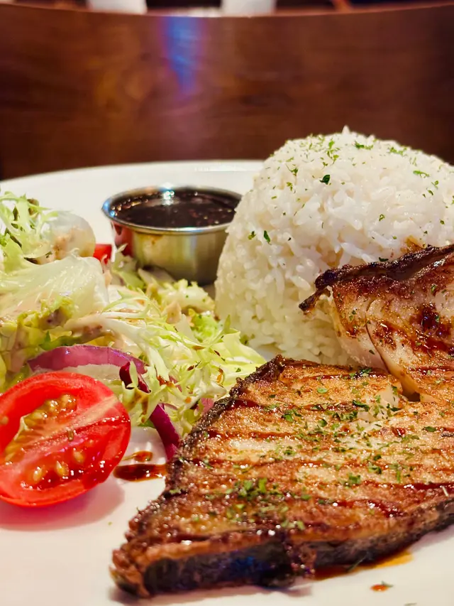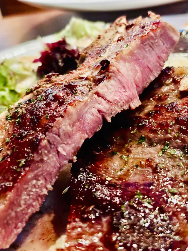 真係吾敢相信一百元有找都可以食到一塊大過我隻手掌嘅牛扒,而且質素仲吾差喎,性價比吾止高,直情係超高🚀!牛扒生熟程度乎合客人要求,油脂分布均勻,肉質鬆軟而且肉汁豐富。簡單的鹽和黑胡椒調味,便足以帶出牛肉的鮮美。薯蓉綿密細滑,入口即化,份量也不少。