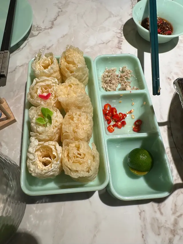 服務一流,店員詳細解釋啲醬點溝。又解釋叫我哋飲咗啖湯先個湯真係好鮮甜。講明椰子水湯底不加一滴水,真係全椰子水味。湯底有無花果,如果可以問咗我地先,我地就會選擇唔加無花果了,因為有少少無花果既酸味。