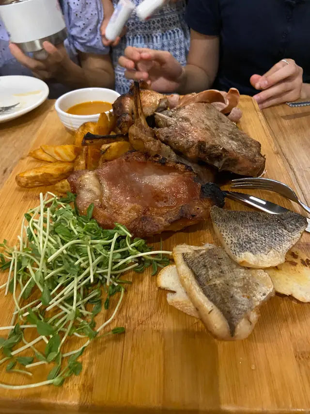 另外有點保雲酥鱸魚 茴香烤雞 西班牙豬肉眼扒 拼盤都好食 如果有多啲唔同種類嘅汁就更豐富 同埋唔知有冇多啲伴菜選擇 (烤雜菜/ 薯蓉instead of 薯角)咁會更健康