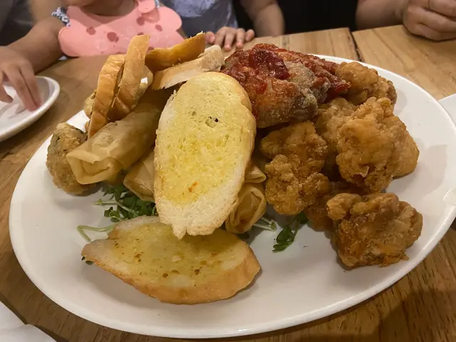 附送4個小食 經理叔叔好有經驗 好細心俾意見 推薦啱我地嘅炸雞 蒜蓉包 素春卷 洛神花烤雞翼 加個馬介休球