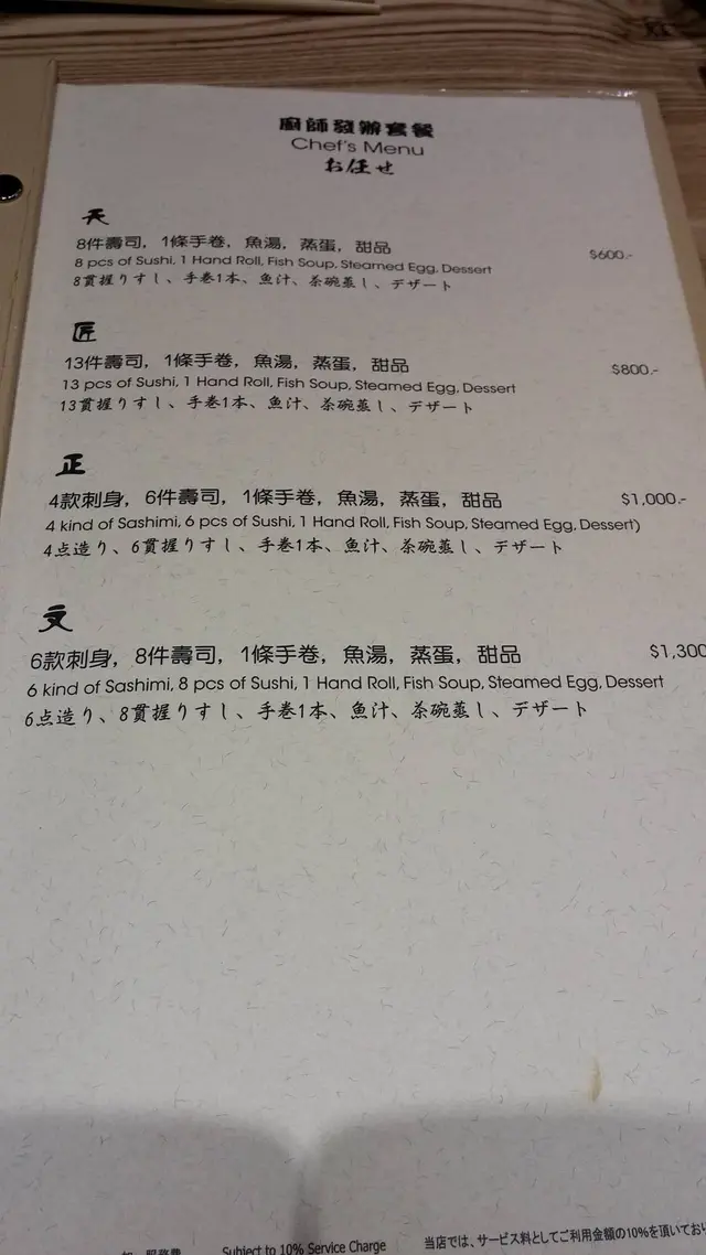 我地揀左chef menu既"正"餐$1000。 食物廚師發板, 揀當天新鮮的食物。