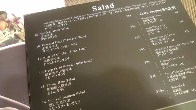 一個燒雞排沙律$95, 另配一客鰻魚$28 (沙律可自由加錢加配水煮蛋/火腿/煙三文魚/吉列大蝦/燒雞排/帶子/鰻魚, 每款價錢由$12至$28)