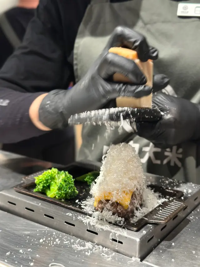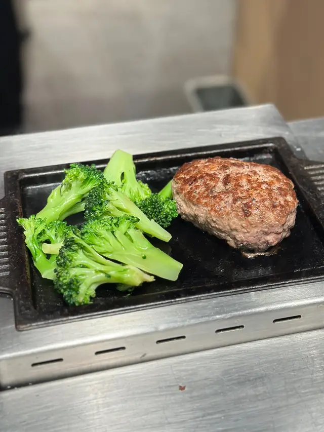 第一件漢堡送上時已預先煎至半熟,再係自己面前嘅鐵板加熱,漢堡肉味香濃又多汁!