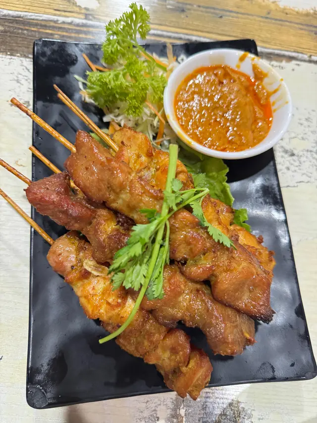 豬肉和雞肉串燒都烤得恰到好處,外焦裡嫩,特別是沙嗲醬香濃而不膩,與串燒是絕配。