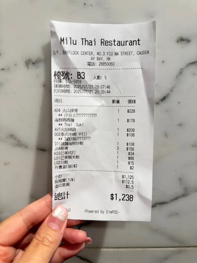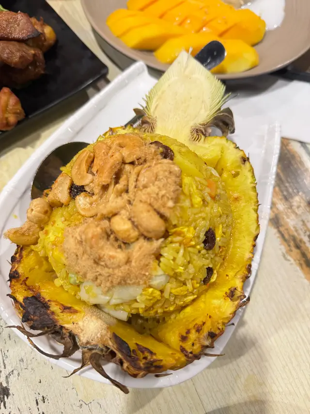 泰國菜的經典,MiluThai的版本用料十足,有蝦仁和魷魚,還加入了提子乾和肉鬆,炒飯粒粒分明,帶著菠蘿的香甜,盛在挖空的菠蘿裡上桌,視覺和味覺都得到滿足。