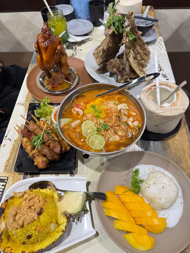 每次嚟都必點這道招牌菜,擺盤極具視覺衝擊力——巨大的豬肋排堆疊成火山的形狀🌋,淋上秘製的泰式醬汁,排骨肉質軟嫩,輕輕一撕就能骨肉分離,醬汁甜中帶辣,非常開胃。