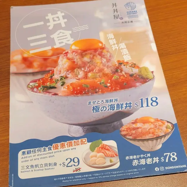 ✨️凡點以上2個名物丼,都可以 $10 優惠價升級定食,有齊前菜、麵豉湯、果茶及甜品啦🎊