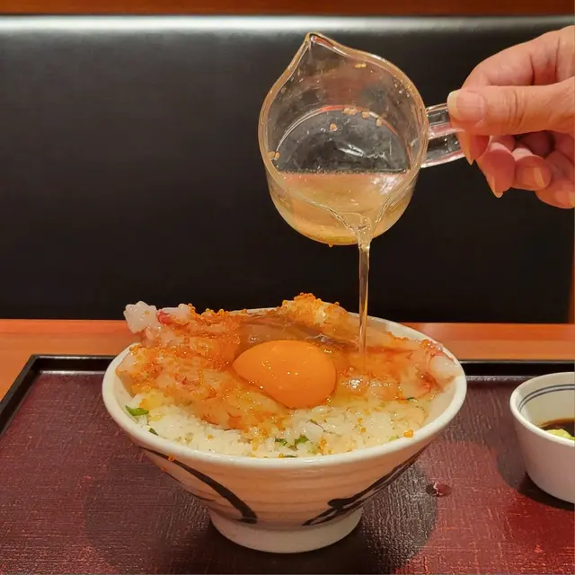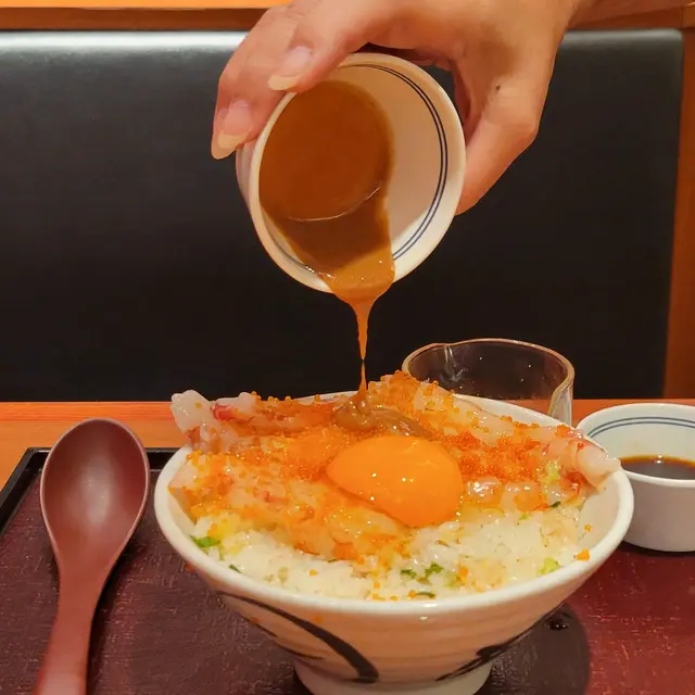 呢個赤海老丼面頭就鋪滿赤蝦刺身🤩份量足以遮蓋飯面,赤蝦蝦身大隻,口感爽口又彈牙,配搭口感爽脆嘅飛魚籽,同埋面頭嘅日本無菌生雞蛋,口感豐富,鮮味即時提升❣️