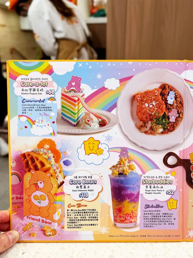 一系列限定的Care Bears主題造型餐飲非常可愛。就連店內也花盡心思佈置,每個角落都有Carebears的身影,相當可愛。