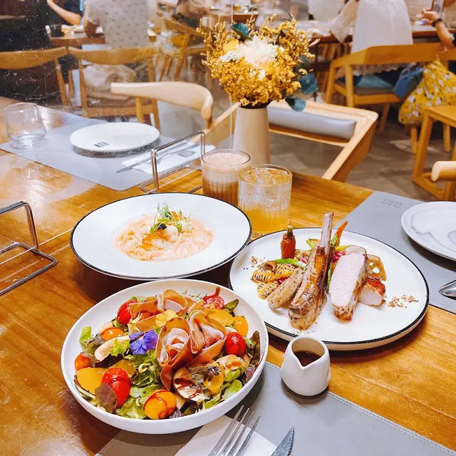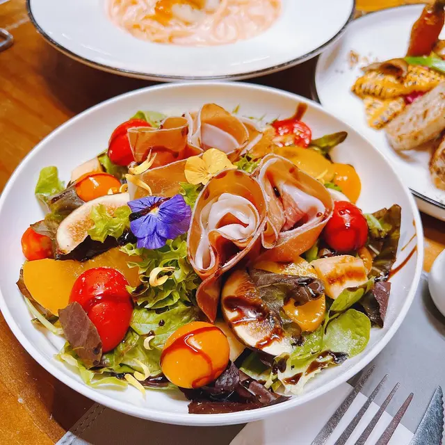 非常色彩繽紛嘅salad🥗未食淨睇到都已經令人感覺好開心😍Parma Ham、桂花蜜瓜、Peach、無花果、沙律菜、2種不同嘅車厘茄、黑橄欖🤩 配上開胃嘅黑醋汁,感覺非常清新🤗 Fresh 🍃