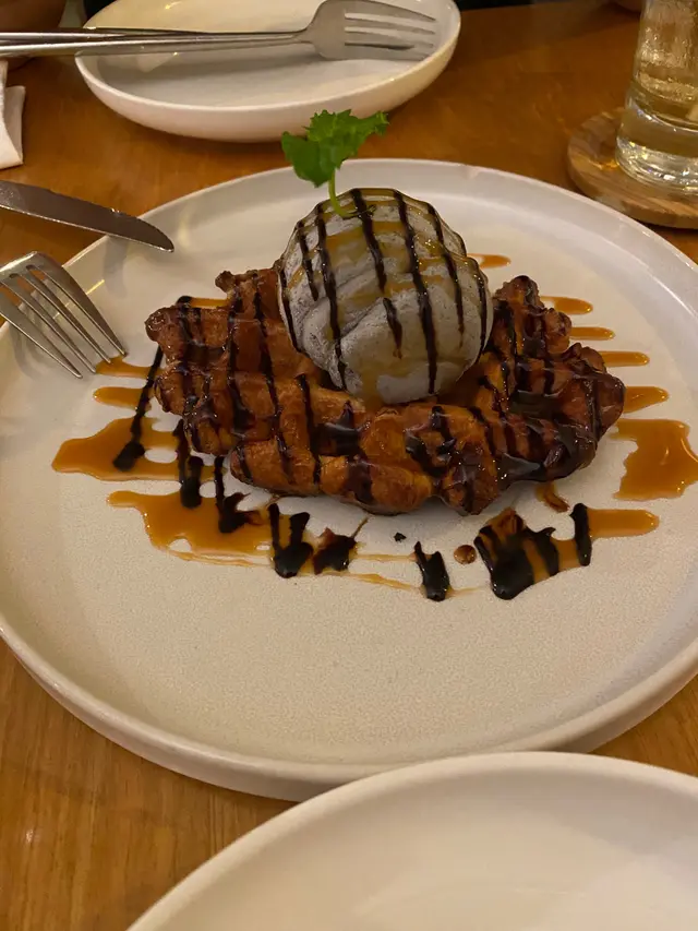 雪糕窩夫,雪糕味有朱古力,芝麻,香芋3款味揀,我地揀左芝麻,微脆嘅窩夫熱辣辣,夾住凍冰冰雪糕好好食!