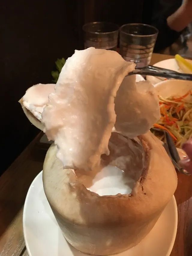 椰子沙冰都係打得好幼滑,仲有半片菠蘿。椰奶味濃郁,最正係可以刮椰子肉食~