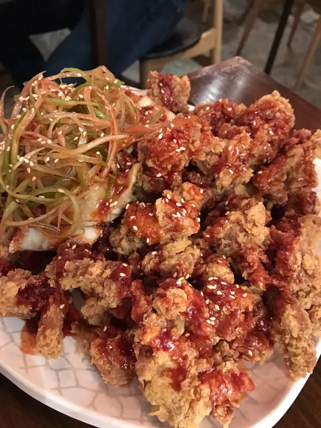 驟眼望落,兩隻醬汁顔色一様,好難分辨是哪一種醬汁,但一食便知龍與鳳。原味辣醬感覺似平時係買到一盒盒既韓式辣醬,比甜辣醬既辣度較高,加埋生既香蔥把辣度升級,配埋碑酒,真係要播番套「來自星星的你」。而甜辣醬,少辣帶甜,兩種醬汁都非常野味,不自覺地一舊一舊咁放入口。