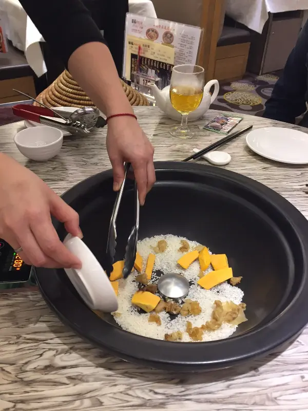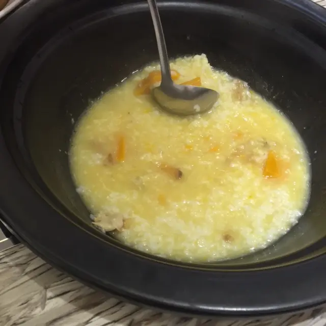 落好order後就可以開始喇!第一步先落粥底材料,我地揀左南瓜花膠粥,好期待!