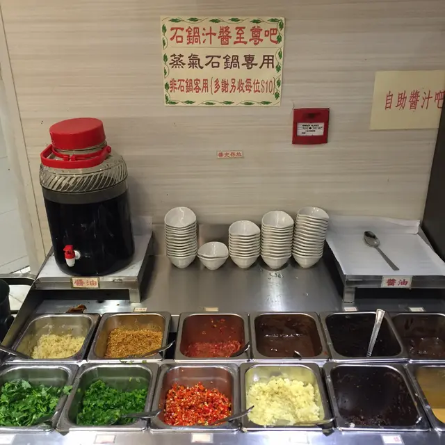 外面有自助調味bar,種類甚多,但食後發現其實海鮮都很鮮,不落調味更能吃出鮮味