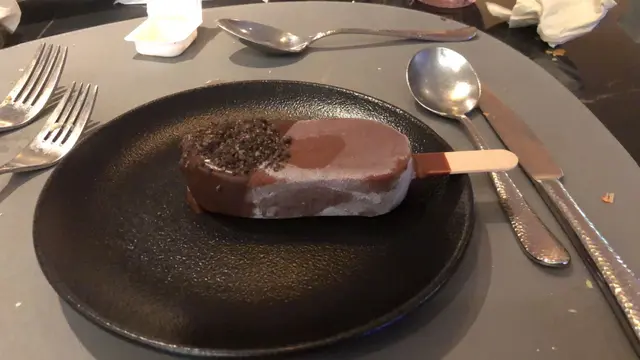 最後甜品除咗甜品bar之外,仲會有一支由侍應依照你嘅配搭製成嘅朱古力脆皮雪條