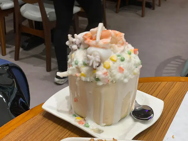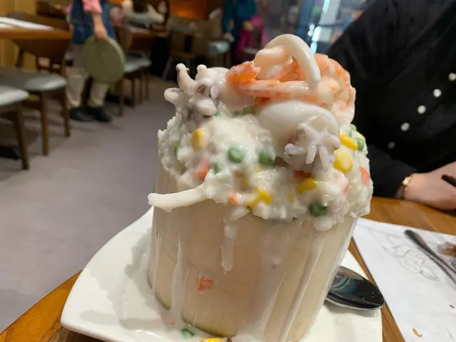 滿載椰青海鮮飯 - 真的是滿載!除了見到的蝦及墨魚,入面也有蜆仔等的海鮮。而且飯充滿濃濃的椰香,相信是用椰肉打磨燴成的。