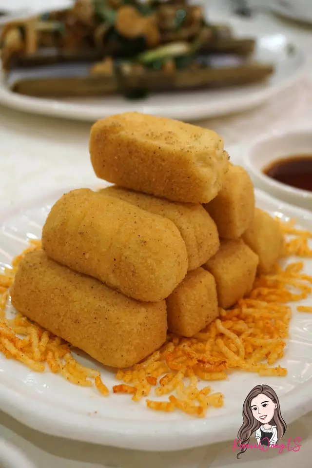 椒鹽焗鮑魚: 鮑魚厚肉而且大隻, 表面稍為泡過油, 薄薄一層炸漿鎖住了原本肉汁, 椒鹽提鮮更加鮮味無窮。